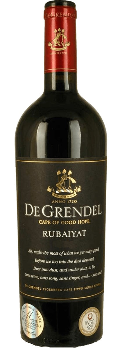Die historische De Grendel Farm befindet sich seit drei Generationen im Besitz der Familie Graaff und wurde jeweils vom Vater an den Sohn übertragen. Sie ist das Herz und die Seele der Familie und ihrer Mitarbeiter, deren Wurzeln auf dem Gut teilweise fünf Generationen zurückreicht. Die Familie Graaff unterstützt die Landarbeiter und ihre Familien und sorgt für Bildung und Förderung ihrer Kinder. Dadurch hat sie einen guten Ruf in der Gemeinde errungen. Der Rubaiyat ist ein klassischer Bordeaux-Blend aus Cabernet Sauvignon, Cabernet Franc, Malbec und Merlot. Der Name entstammt einer klassischen Sammlung 1000 persischer Liebesgedichte aus dem 10.Jahrhundert und gehörte zu den Lieblingsbüchern des inzwischen verstorbenen Sir David Graaff. Ein Vers aus der Gedichtsammlung ziert jeden Jahrgang..