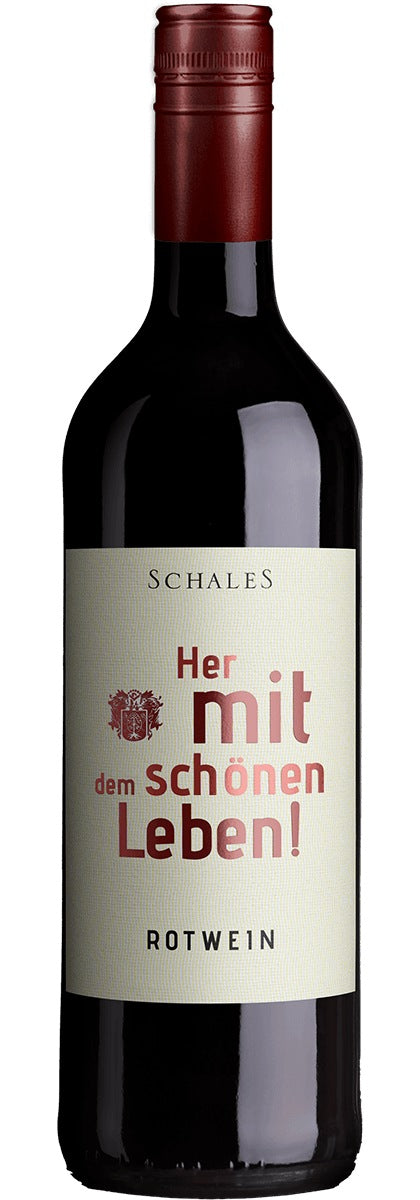 Der Dritte im Bunde neben Grauburgunder und duftigem Rosé: Her mit dem schönen Leben! in Rot. Im Bukett erleben wir eine harmonische Verbindung zwischen dem Duft nach reifen Früchten und leicht vegetativen Aromen. Die vorhandene Säure ist gut ausbalanciert und stützt die kräftige, dennoch weiche Art des Weins.