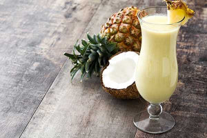 Zubereitung: Die Ananas schälen und in Stücke schneiden, mit dem Kokossaft pürieren und durch ein Sieb streichen. Auf vier Gläser verteilen, anschließend mit Mineralwasser auffüllen. Wer mag, kann die Gläser noch mit Ananasscheiben oder den Glasrand mit Zucker verzieren. Noch schneller und einfacher ist dann nur noch unser Night Orient Piña Colada aus der Flasche.