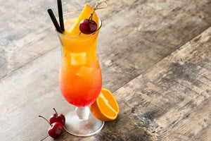 Zutaten: 300 ml Orangensaft, 170 ml Ananassaft, 4 TL Zitronensaft (oder Limettensaft), 40 ml Grenadine. Eiswürfel, Orangenscheiben, Cocktailkirschen zum Garnieren.