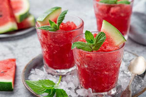 Zutaten:800 g rote Wassermelone, 4 Stiele Zitronenmelisse, 750 ml frisches, kaltes Trinkwasser