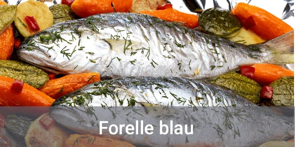 Wir kennen den „Karpfen blau“ zu Weihnachten oder Silvester, zudem gibt es die „Forelle blau“. Aber was bedeutet eigentlich das „blau“ im Zusatz, wie wird die Forelle zubereitet? Das „blau“ bezeichnet die Farbe des Fisches nach dessen Garung. Dafür wird die Forelle vorsichtig gewaschen, sodass ihre Schleimschicht erhalten bleibt. In einem heißen Sud aus verschiedenen Gemüsen, wie z. B. Möhren, Lauch und Sellerie sowie unterschiedlichen Gewürzen und Kräutern, wie z. B. Lorbeerblättern, Nelken, Wacholder- und Pfefferkörnern, inkl. Essig, wird die Forelle sanft pochiert. Durch den Essig im Sud färbt sich die Schleimschicht bei der Garung blau – schon wissen wir, woher der Name stammt.