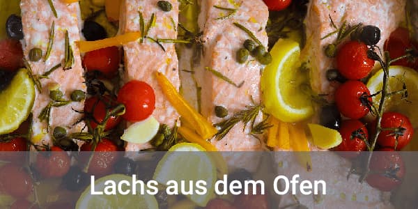 Neben der gängigen Zubereitungsart das Lachsfilet in der Pfanne zu braten, kann man den Lachs auch wunderbar im Ofen (oder Dampfgarer) garen. Dazu wird er einfach gewaschen, trocken getupft, mit Zitronensaft beträufelt und mit Salz und Pfeffer gewürzt. Anschließend wird er in eine gefettete Auflaufform gelegt und im Ofen sanft gegart. Ich finde es noch schöner, wenn der leicht gewürzte Lachs auf ein Gemüsebett aus zart gewürzten Möhren-, Zucchini- und Porreestreifen gebettet wird. Dazu einfach ein bisschen Reis oder ein frisches Baguette – lecker!