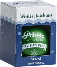 Das etwas andere Mitbringsel: Eine grüne Christbaumkugel gefüllt mit feinster Winter Haselnuss von der Prinz Feinbrennerei - da kann es auch eine zweite Kugel sein. Vielleicht gefüllt mit Alter Marille??